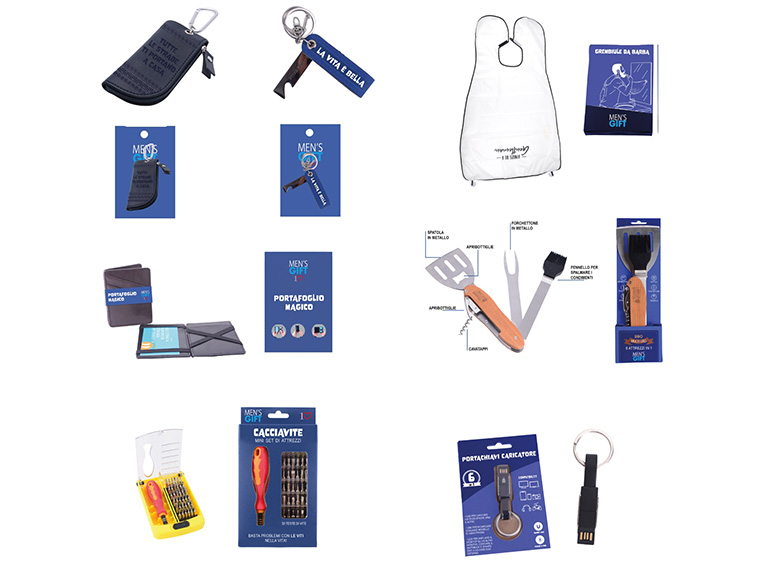 Una gamma di prodotti studiati appositamente per un target maschile: una linea di articoli personalizzati con varie utilità, sono caratterizzati da confezioni regalo sulle quali sono indicati consigli ed istruzioni di utilizzo, dal portachiavi multi-tool al set di attrezzature, mini cacciaviti e molto altro.